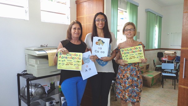 Livros e cartazes do Método Léa Dupret de Alfabetização doados ao projeto.