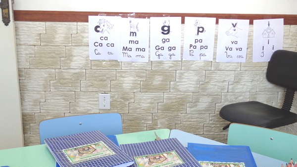Livros e cartazes do Método Léa Dupret de Alfabetização doados ao projeto.
